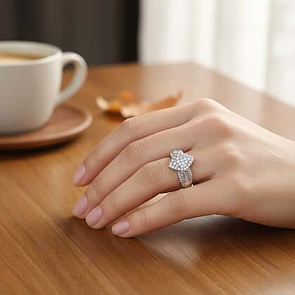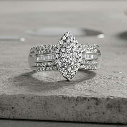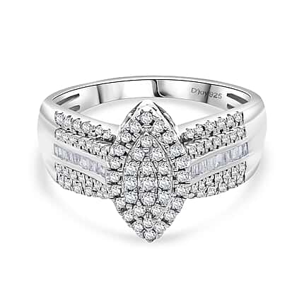 D'Joy White Diamond Ring in Rhodium Overlay Sterling Silver 0.47 Ct