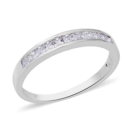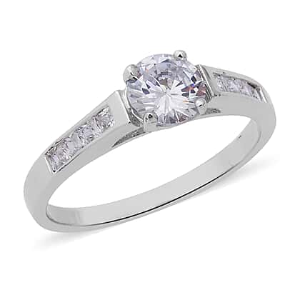ELANZA Simulated Diamond (Rnd and Sqr) Ring in Rhodium Overlay Sterling Silver