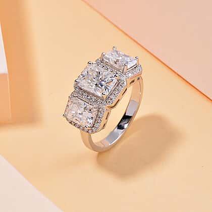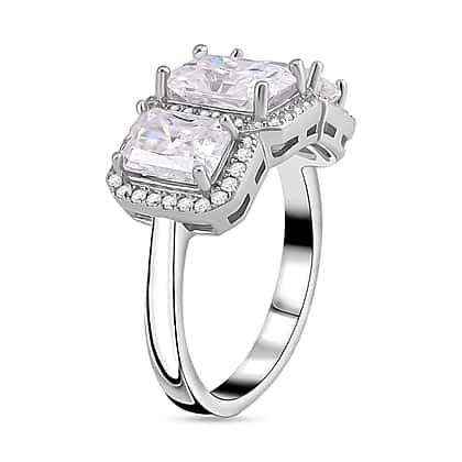 Emerald Cut Moissanite Ring in Rhodium Overlay Sterling Silver 4.50 Ct.