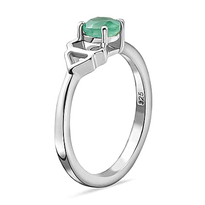 Emerald May Birthstone Zodiac Taurus Sign Ring in Platinum Plated Sterling Silver