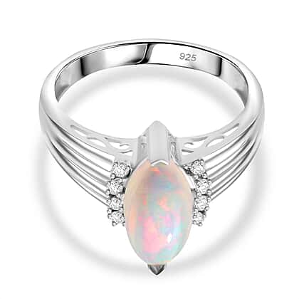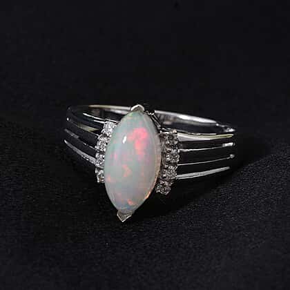 Ethiopian Opal, Moissanite Ring in Rhodium Overlay Sterling Silver 1.38 Ct.