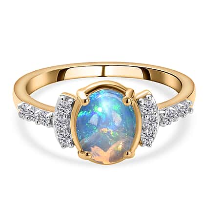 Ethiopian Welo Opal and Natural Cambodian Zircon Ring in Gold Plated Sterling Silver 1.05 Ct.