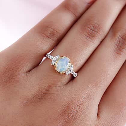 Ethiopian Welo Opal and Natural Cambodian Zircon Ring in 14K Gold Overlay Sterling Silver 1.05 Ct.