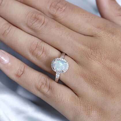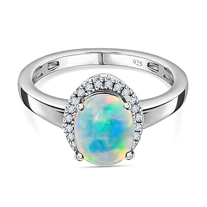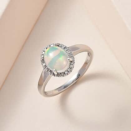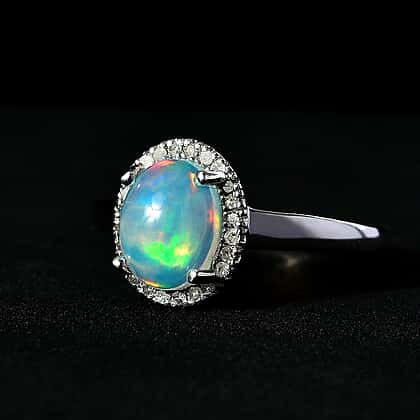Ethiopian Welo Opal & Diamond Ring in Platinum Overlay Sterling Silver 1.30 Ct