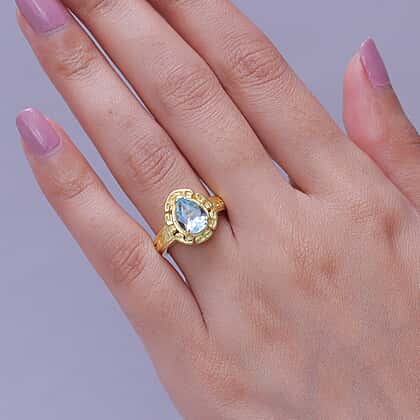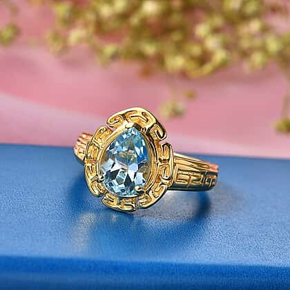 EverTrue - Skyblue Topaz Pear Cut Solitaire Ring in Yellow Gold Tone 2.73 Ct.