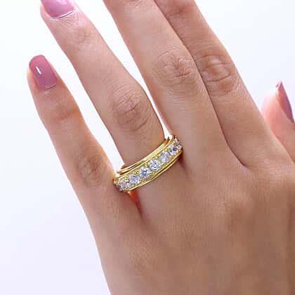 EverTrue 7.8 Ct. White Cubic Zirconia Full Eternity Spinner Band Ring For Men and Women in Yellow Gold Plating