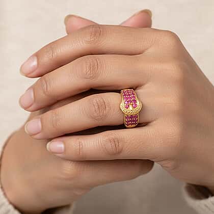 EverTrue African Ruby Buckle Ring in Yellow Gold Tone 1.56 Ct.