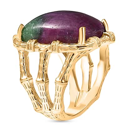 EverTrue Natural Ruby Zoisite Solitaire Ring in Yellow Gold Plated 19.19 Ct.