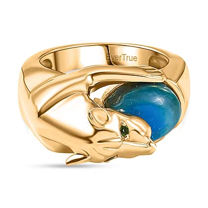 EverTrue Opalina, Natural Chrome Diopside Ring Pure Yellow Brass 2.031 Ct.