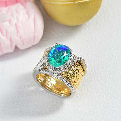 EverTrue Peacock Triplet Quartz Set of 2 Rings in Platinum Overlay & Gold Two Tone 3.84 Ct.