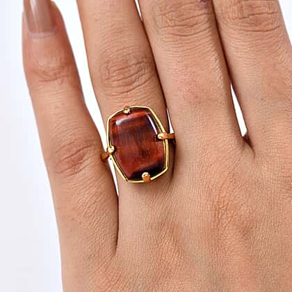 EverTrue Red Tiger Eye Solitaire Ring in Yellow Gold Plated 14.58 Ct.