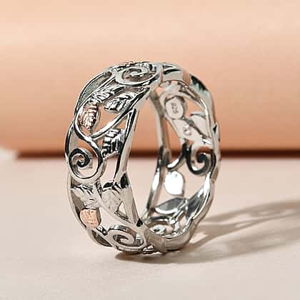 Full of movement and meaning, this filigree leaf ring brings nature’s poetry to life through sculpted swirls and delicately layered leaves. Crafted in sterling silver, it’s finished with platinum for lasting brightness and accented with touches of 18K vermeil rose gold for warmth and contrast. The intricate openwork design feels airy yet substantial, symbolising growth, renewal and connection. Its smooth interior ensures a comfortable fit, while the tarnish-resistant and hypoallergenic surface keeps it radiant for years. A statement piece that blends art and craftsmanship, perfect for women who appreciate jewellery with a story.
