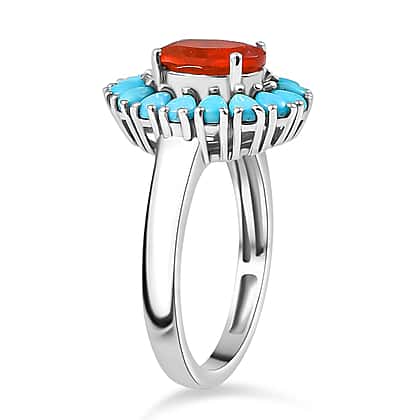 Fire Opal & Sleeping Beauty Turquoise Ring in Rhodium Overlay Sterling Silver 1.80 Ct.