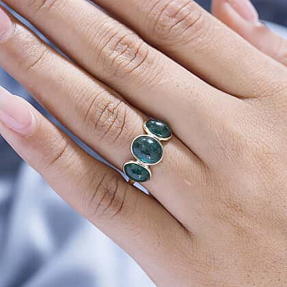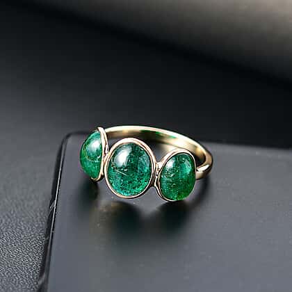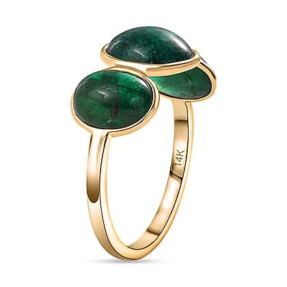 First Time Ever - 14K Yellow Gold Premium Cabochon Emerald Trilogy Ring 5.11 Ct