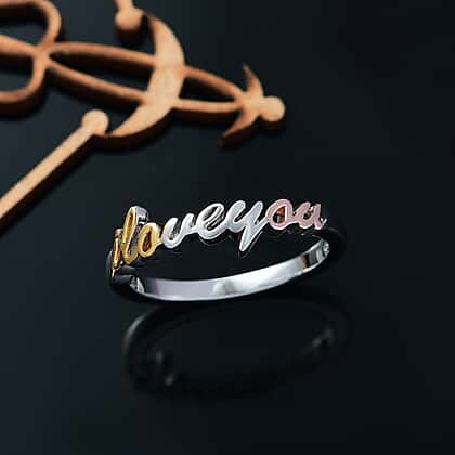GP - Amore Collection - I Love You Band Ring in 18K Vermeil Yellow and Rose Gold Plated and Rhodium Overlay Sterling Silver