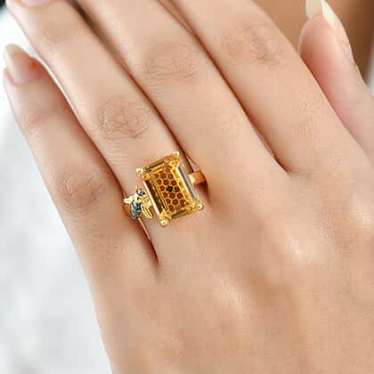 GP - Honeycomb Collection - Citrine & Blue Sapphire Living Creature Ring in 18K Vermeil Yellow Gold Plated Sterling Silver 8.19 Ct.
