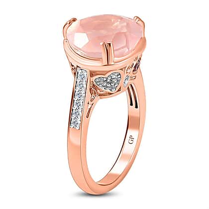 GP Amore Collection - Rose Quartz, Rhodolite Garnet and Natural Cambodian Zircon Heart Ring in Sterling Silver with 18K Vermeil Rose Gold 6.08 Ct