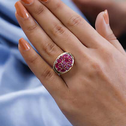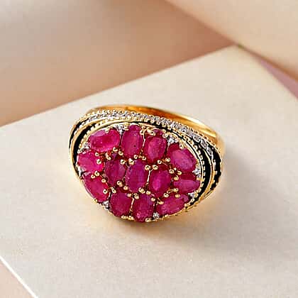 GP Art Deco Collection - African Ruby and Natural Zircon Cluster Enameled Ring in 18K YG Vermeil Plated Sterling Silver 4.80 Ct, Silver Wt 6.50 Gms.