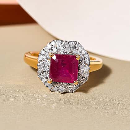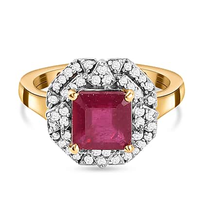 GP Art Deco Collection - African Ruby & Diamond Ring in 18K Vermeil YG Plated Sterling Silver 2.71 Ct