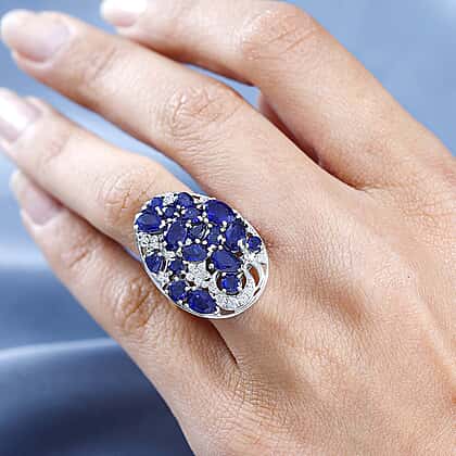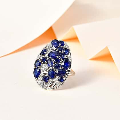GP Celestial Collection - Blue Sapphire & Natural Zircon Ring in Platinum Overlay Sterling Silver 7.00 Ct.