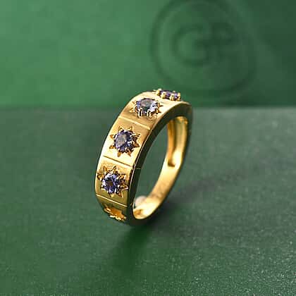 GP Celestial Dream Collection - Tanzanite & Blue Sapphire Half Eternity Band Ring in 18K Vermeil Yellow Gold Plated Sterling Silver