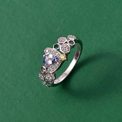 GP Honeycomb Collection - Tanzanite, Blue Sapphire, Yellow Sapphire & White Zircon Living Creature Ring in Rhodium Overlay Sterling Silver