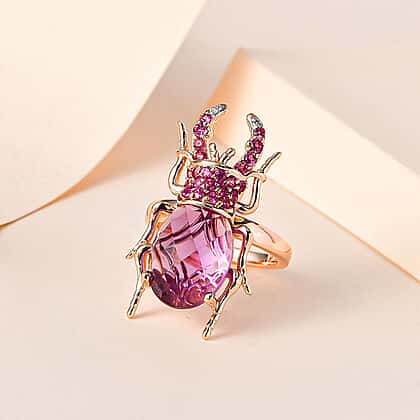 GP Italian Garden Collection - Amethyst, Rhodolite Garnet & Natural Zircon Ring in 18K Vermeil RG Plated Sterling Silver 6.75 Ct, Silver Wt. 5.20 Gms