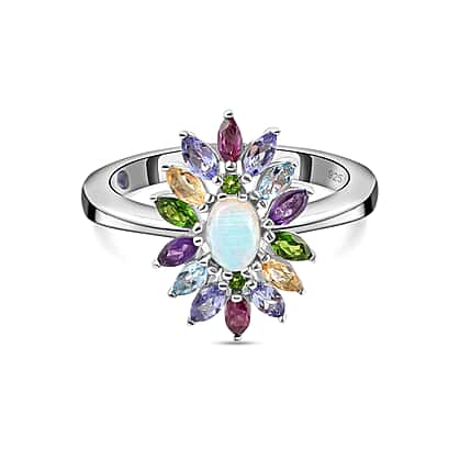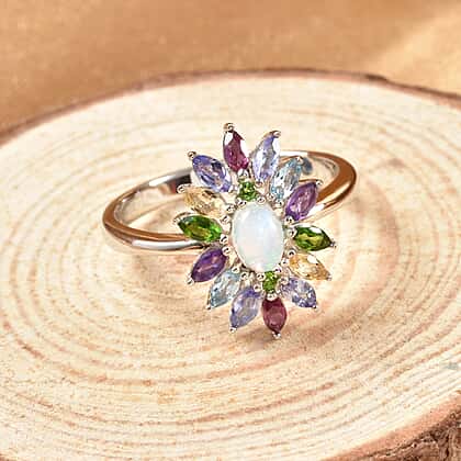 GP Italian Garden Collection - Ethiopian Welo Opal, Tanzanite, Amethyst and Multi Gemstone Ring in Rhodium Overlay Sterling Silver 1.76 Ct