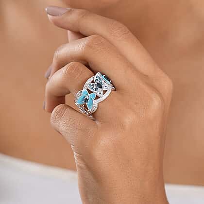 Bring the vibrant beauty of nature to life with its stunning butterfly-inspired ring, featuring a London blue topaz, blue sapphire, Swiss blue topaz, and dazzling white zircon stones. Set in rhodium overlay on 925 sterling silver, this ring ensures durability and a mirror-like shine. The cluster design creates a sophisticated, garden-inspired look, making it a standout piece for any occasion. Whether for a special event or daily wear, this ring effortlessly blends beauty with the brilliance of colourful gemstones, adding a touch of nature's charm to your jewellery collection.