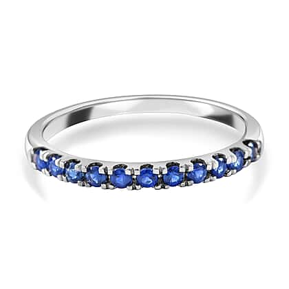- The ring is embellished with 11 round-shaped tanzanite gemstones, exuding violet-blue hues to capture attention.