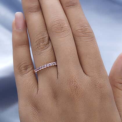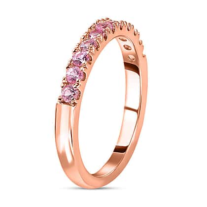 The pink sapphire ring ensures comfort with gems on the top dazzling in the light. The ring is for those who love to add a pop of colour and personality to their style. The pink hues of the sapphires are complemented by the 18K Vermeil Rose Gold Plated Sterling Silver that is both elegant and feminine. The ring can be worn to festive events and parties.