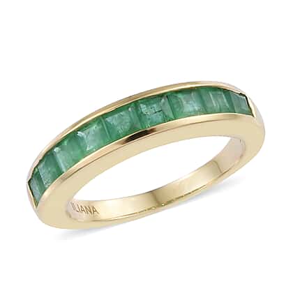 ILIANA 1.35 Ct AAA Kagem Zambian Emerald Half Eternity Band Ring in 18K Gold 4.41 Grams