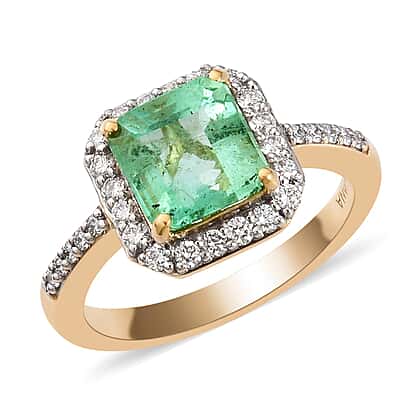 ILIANA 18K Yellow Gold Boyaca Colombian Emerald 3A and Diamond (GH-SI ) Ring 2.40 Ct, Gold wt. 5.11 Gms