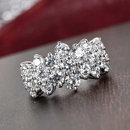 J Francis Platinum Overlay Sterling Silver Cluster Band Ring Made with Finest CZ 4.05 Ct.