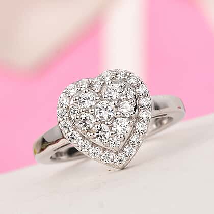 J Francis Platinum Overlay Sterling Silver Ring Made with Finest CZ 1.19 Ct.