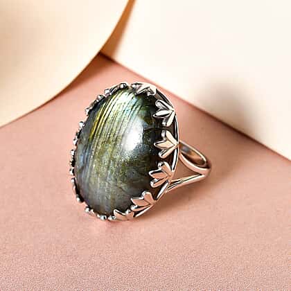 Labradorite Ring in Platinum Overlay Sterling Silver 26.520 Ct.