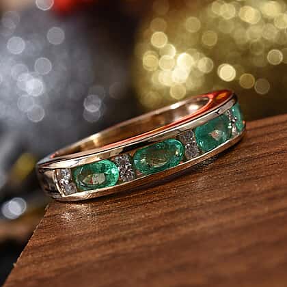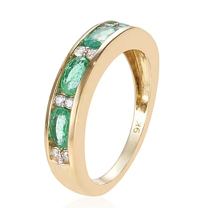 1 Carat Boyaca Colombian Emerald and Diamond Eternity Band Ring in 9K Yellow Gold