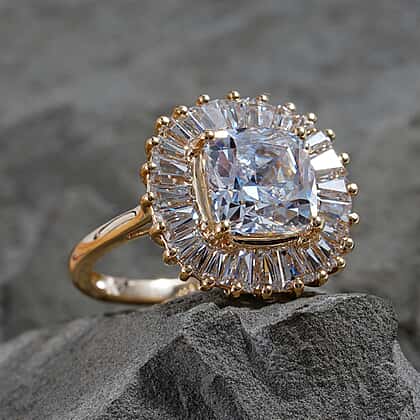 Lustro Stella - 9K Yellow Gold (Cush 8x8) Ring Made with Finest CZ