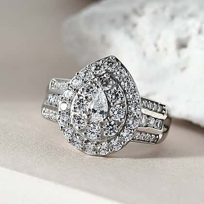 Lustro Stella Platinum Overlay Sterling Silver Ring Made with Finest CZ 2.57 Ct.