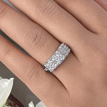 Lustro Stella Platinum Overlay Sterling Silver Ring Made with Finest CZ 3.01 Ct.