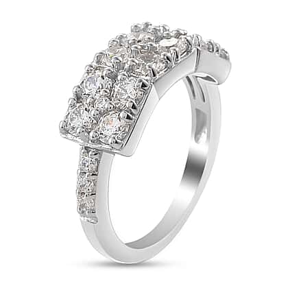 Lustro Stella Made with Finest CZ ZARCONIA Ring in Platinum Plated Sterling Silver