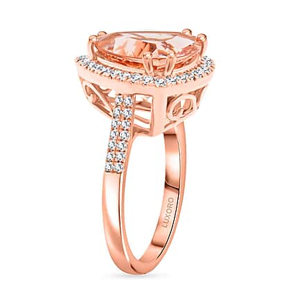 Luxoro 10K Rose Gold AAA Morganite, White Diamond I2 Halo Ring 5.15 Cts.