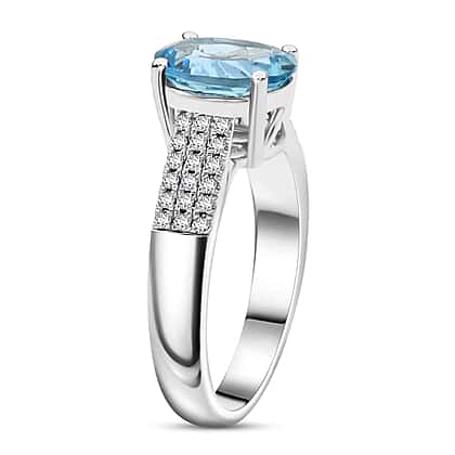 Luxoro 10K White Gold AAAA Santamaria Aquamarine , White Diamond VS Ring 1.75 ct, Gold Wt. 3.7 Gms 1.750 Ct.