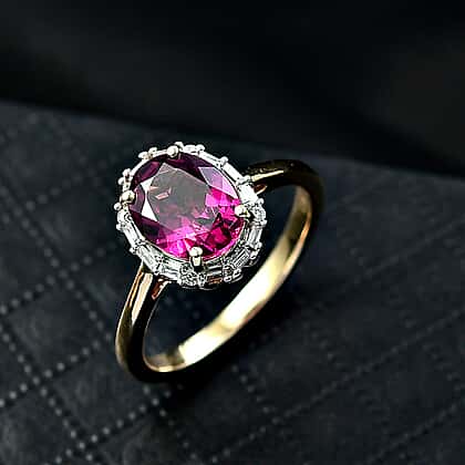 Luxoro 10K Yellow Gold AAA Radiant Ember Garnet, White Diamond I2 Main Stone With Surrounding Stone Ring, Gold Wt.2.53 Gms 2.391 Ct.