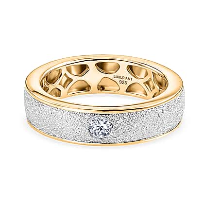 Luxuriant - Lab Grown Diamond (SI-G-H) Band Ring in Rhodium Overlay & 18K Vermeil Yellow Gold Plated Sterling Silver