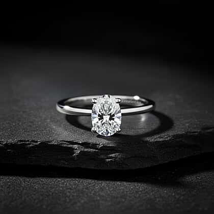 Luxuriant - Lab Grown Diamond (SI) Oval Cut Solitaire Ring in Rhodium Overlay Sterling Silver 1.00 Ct.