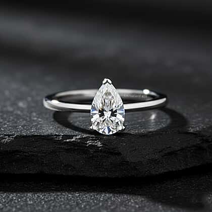 Luxuriant - Pear Cut Lab Grown Diamond (SI) Solitaire Ring in Rhodium Overlay Sterling Silver 1.00 Ct.