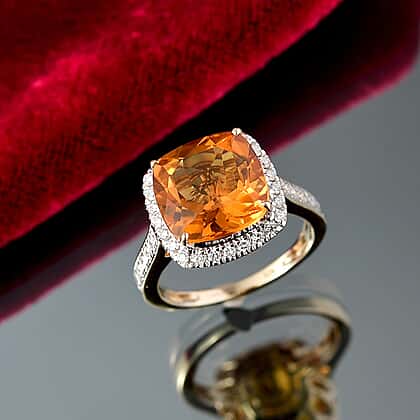 Luxuriant 10K Yellow Gold AAA Madeira Citrine, Lab Grown Diamond GH, SI Main Stone With Side Stone Ring, Gold Wt.3.52 Gms 6.535 Ct.