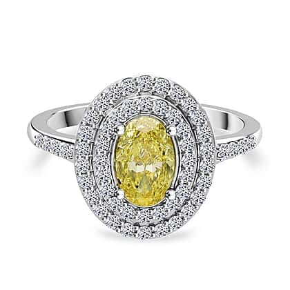 LUXURIANT 1.49 Ct. Lab Grown Yellow Diamond, White Lab Grown Diamond Double Halo Ring in 950 Platinum SGL Certified