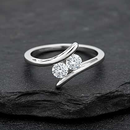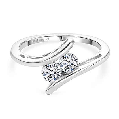 Luxuriant SI-G-H Lab Grown Diamond Bypass Ring in Rhodium Overlay Sterling Silver 0.50 Ct.